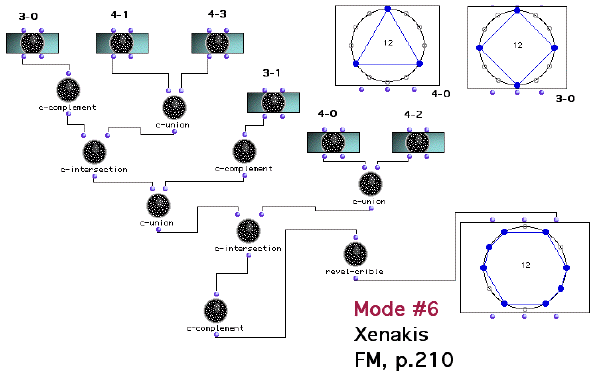 La méthode de Xenakis n'est pas unique, il existe plusieurs manières différentes, en utilisant des cribles symétriques et des opérations ensemblistes de générer le même mode à transpositions limitées. C'est ce que fait remarquer André Riotte dans A. Riotte dans "Formalisation des structures musicales" :