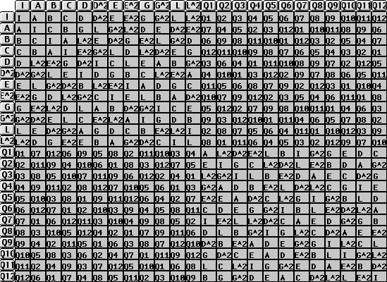 La théorie des groupes nous montre qu'il existe 24 transformations du cube sur lui-même. Il s'agit de toutes les rotations : 90°, 180° sur divers axes. Ces transformations forment un groupe, c'est à dire que chaque combinaison de 2 transformations est équivalente à une des 24 transformations. Voici la tables des transformations :