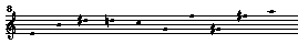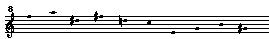 The same holds for the violin B solo part: when the last note of the motive arrives, other notes are decreased so that the reference motive is not played. The only part in which the reference motive is actually played is the celesta part: it appears as state 15 at the end of measure 21. In the piccolo part, something interesting should be mentionned. As we have already pointed out, the piccolo part contains no motive with more than nine notes. This means that at every stage of the process, at least one note is deleted. In fact, the reference motive for this part is represented in Example 4: