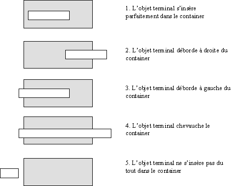 Lorsqu'un container récolte les éléments terminaux qui lui reviennent, plusieurs cas de figure peuvent se présenter :