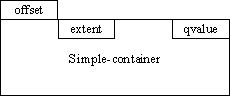 La structure d'un objet de type simple-container est alors immédiate. On y trouve trois champs qui permettent de le définir sur le plan temporel et, si l'objet est un contenant, un champ supplémentaire listant toutes les sous structures qu'il contient. Ainsi, la " qvalue " représente la fraction de la noire nécessaire pour exprimer, suivant un nombre entier, la durée de l'objet ainsi que les positions temporelles des éventuelles sous-structures qu'il contient. L'" extent " exprime donc la durée de l'objet en rapport avec cette qvalue (c'est à dire que l'objet possède une durée de extent / qvalue noires ). Ainsi, la durée d'une croche s'écrit comme une extent de 1 pour une qvalue de 2, une croche pointée comme une extent de 3 pour une qvalue de 4, etc. Finalement, le champ " offset " permet de positionner l'objet dans le temps, de manière relative à l'objet qui le contient, au niveau hiérarchique immédiatement supérieur.