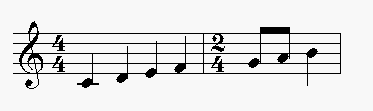 Compressons la première mesure d'un facteur de 2/3. Le résultat en reportant systématiquement la valeur supplémentaire jusqu'à la fin de la voix est le suivant :
