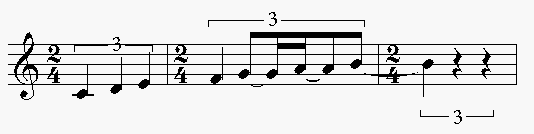 Malheureusement, la notation musicale traditionnelle ne fournit pas de moyen pour représenter cette structure : il n'existe pas de signature qui permette d'exprimer quatre noires de triolet dans une mesure.