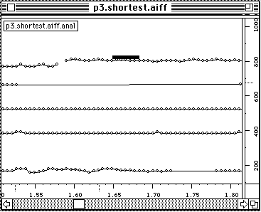 Parce que les amplitudes des partiels oscillent ils peuvent descendre sous le seuil. Dans le suivi les partiels sont alors coupes en deux parties. Il y a la possibilite de restaurer ces trous en liant les deux parties apres l'analyse. Dans certains cas un seul point manque et il semble evident de faire cette liaison automatiquement. Dans d'autres cas il peut veritablement s'agir d'un nouveau partiel et une liaison automatique introduirait des fautes.